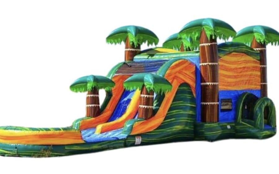 FEATURES A Dual Lane Slide, Bounce House, Climb Wall, Basketball Hoop, Tunnel, and Obstacle Pop Ups, it has no shortage of ways to keep kids entertained!