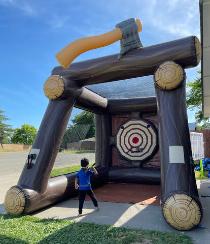 Bouncy Works axe throwing game is perfect for birthday parites, company picnics, sporting events, backyard bbq's, school and church events. Can be setup indoor or outdoor. So, gather your friends and family and get ready to experience some friendly competition!