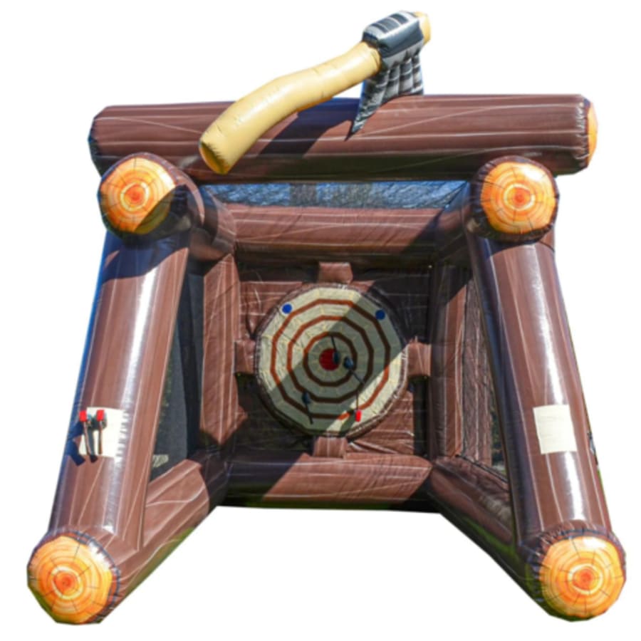 The object of the game is to hit the blue or red target with your axe (the blue dot gets more points). Points are awarded for each successful throw. The player with the most points at the end of the game wins! This inflatable game is perfect for all ages and skill levels. It is sure to provide hours of entertainment for everyone. So put your throwing skills to the test and see who can be crowned champion of the axe-throwing challenge game!