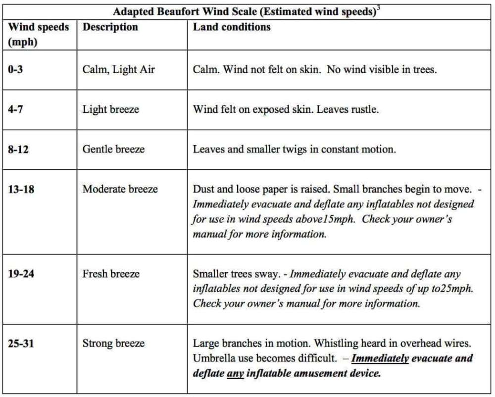 Wind: Bouncyworks will not set up if the forecast shows winds over 15mph with wind gusts exceeding 20 mph as the conditions are considered unsafe for a bounce house or other inflatable ride.